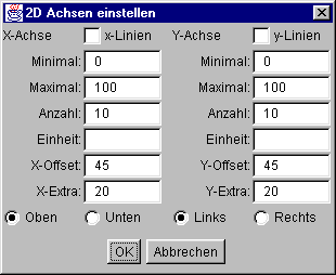 Mit den Radiobuttons "Oben", "Unten", "Links" und "Rechts" wird die Lage der Achsen bestimmt.