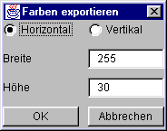 Mit Farben exportieren kann der Farbverlauf unter Berücksichtigung der Farbkurve in eine Bitmap-Datei abgespeichert werden.