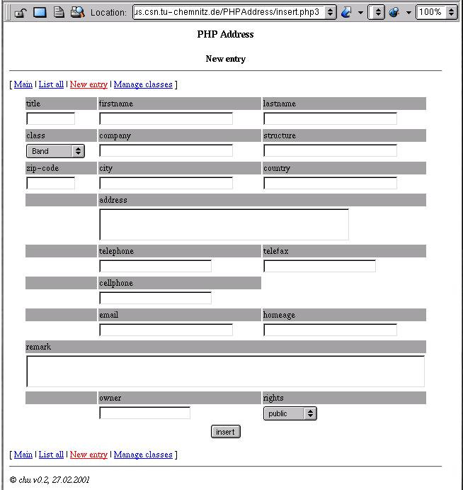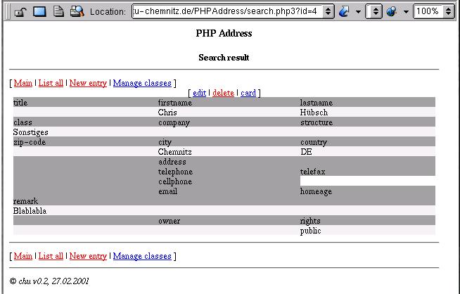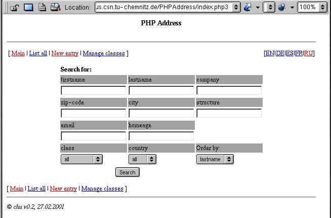 PHP-Address is a collection of PHP-Scripts for maintaing a small web-based address-database.