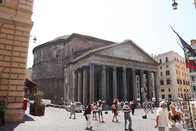 Noch eine Stufe beeindruckender ist das Pantheon. Vor fast 2000 Jahren als Kuppelbau aus Beton (!) gegossen ist es noch immer einwandfrei erhalten. Ähnlich alte Gebäude sind da schon längst ruiniert.