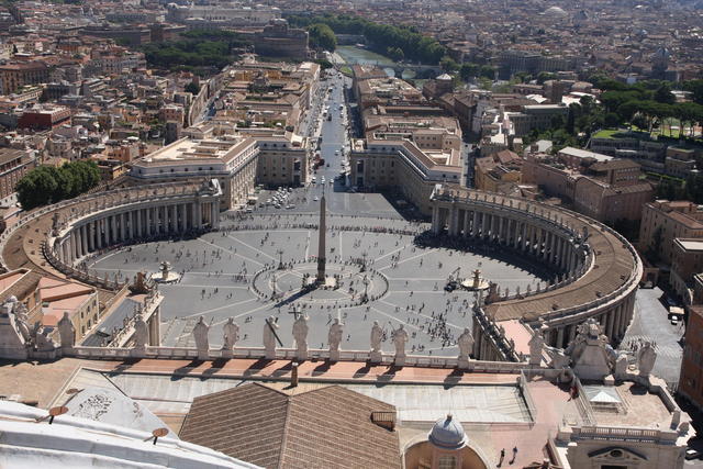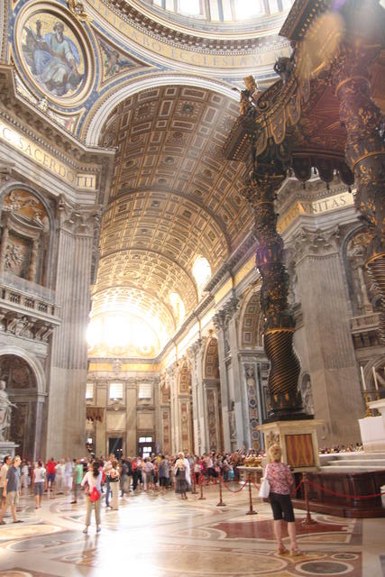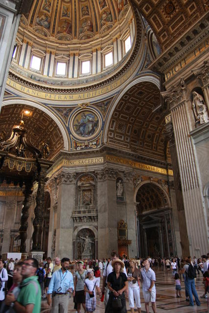 Der Eintritt zum Petersdom ist kostenlos, aber man wartet an der Sicherheitskontrolle am Eingang. Für den Aufstieg zur Kuppel muss man ein paar Euro abgeben, aber das muss man einfach gemacht haben. Neben der Kuppel darf man auch auf dem Dach des Hauptschiffs herumlaufen. Ein sehr interessanter Gedanke, wenn man dann später unten steht.
