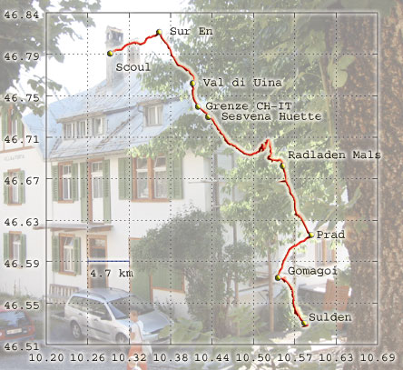 Von Scoul fuhren wir nach einem hervorragenden schweizer Frühstück durchs Tal von Scoul nach Sur En. Von dort aus ging es weiter steil das Val di Uina hinauf, wo uns ein grandioser Anblick erwartete. Der in den Fels gesprengte Pfad ist zwar leider zu beschieben, dafür bietet er aber ein absolut beeindruckendes Panorama