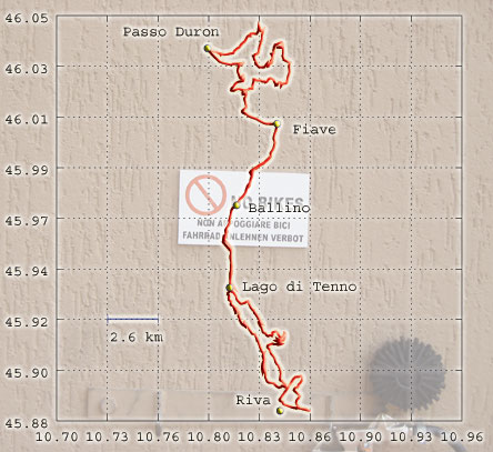 Gegen 14.00 Uhr brachen wir dann noch einmal gemeinsam Richtung Tenno-See auf. Von da aus ging es weiter auf Teer zum Passo Duron (1000m). Von dort aus nahmen wir den Waldweg zum San Martino (1400). Zur Belohnung gab es mal wieder einen klasse Downhill auf Schotter und Waldwegen.